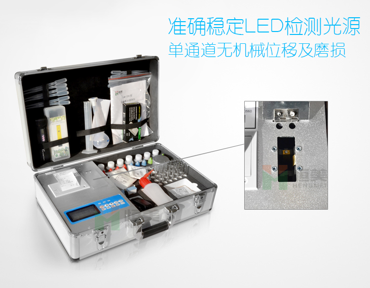 (4)向裝有標準液、被測液比色皿內分別加入2滴氮1號試劑,搖勻,再加入2滴氮2號試劑,搖勻。停放10分鐘,再各滴入15滴水,上儀器進行測定。