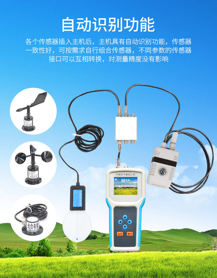 各個傳感器插入主機后,主機具有自動識別功能,傳感器一致性好,可按需求自行組合傳感器,不同參數的傳感器接口可以互相轉換,對測量精度沒有影響。