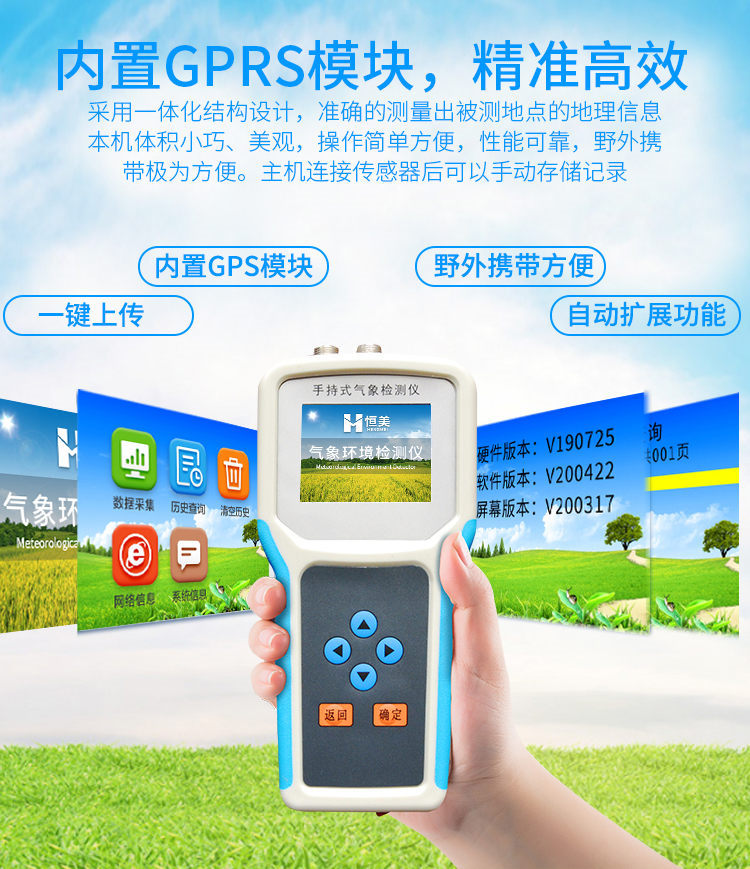 采用一體化結構設計,內置GPS模塊,4G模塊,外置SD卡,能準確的測量出被測地點的地理信息,界面除顯示所測環(huán)境參數、存儲數據外,還可顯示測點的經緯度。通過內置的GPRS一鍵上傳被測點的環(huán)境因子測量數據等。同時還可以通過外置SD卡直接把數據導出到電腦上。(可選)