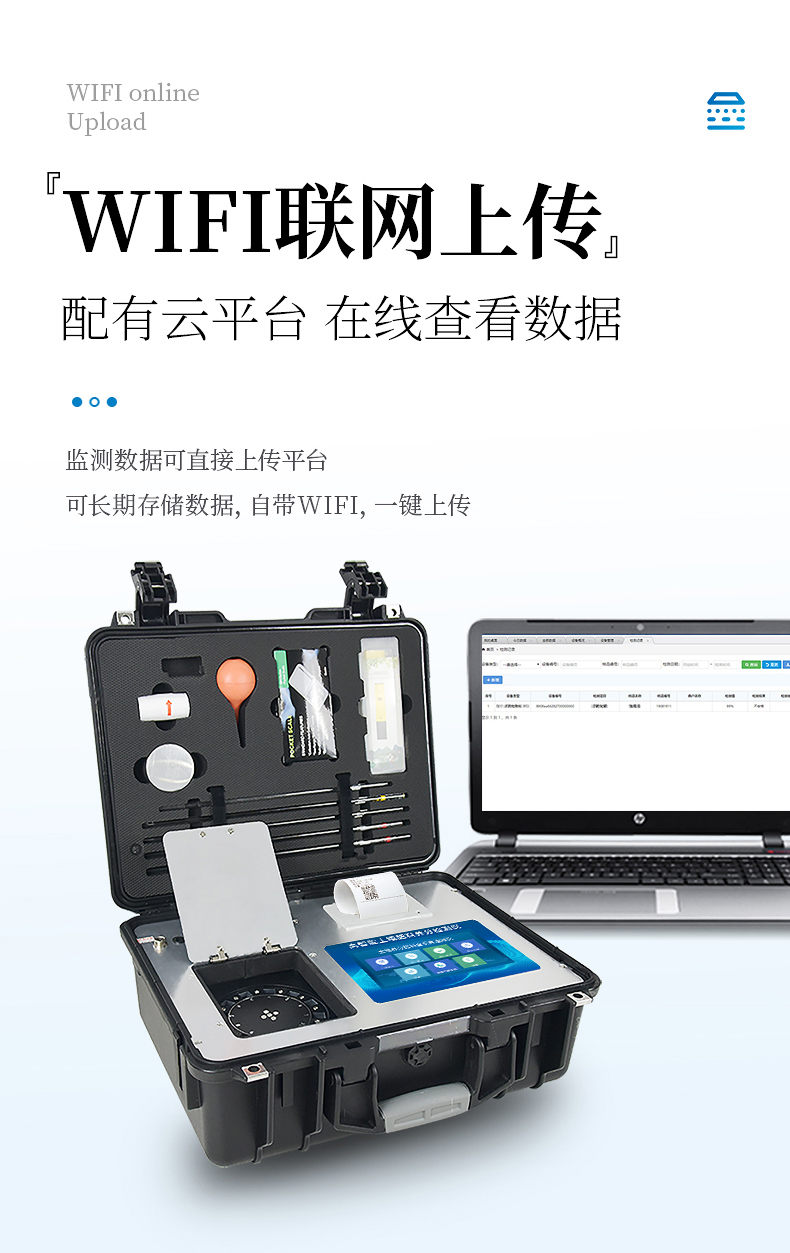 6、儀器標(biāo)配wifi無(wú)線上傳、4G聯(lián)網(wǎng)傳輸、GPRS無(wú)線遠(yuǎn)傳功能,快速上傳數(shù)據(jù)。